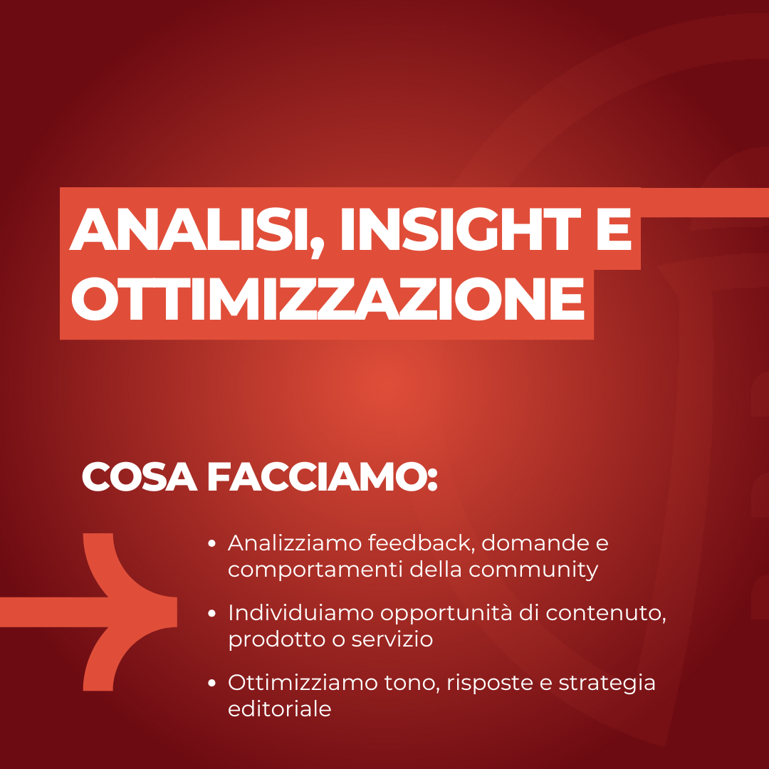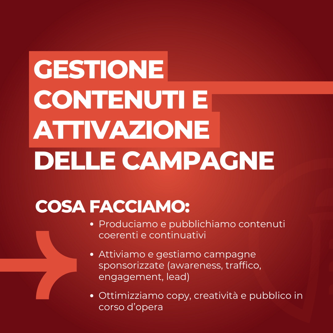 Gestiamo contenuti e community per far crescere la tua audience, distinguere il tuo brand dalla concorrenza e trasformare interazioni in opportunità.